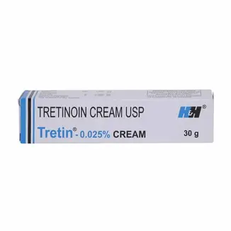 Tretin 0.025% Cream is a form of vitamin A that is used to treat acne which appears as spots or pimples on your face, chest, or back. It also helps to smooth rough facial skin and to reduce fine wrinkles on the skin.Tretin 0.025% Cream reduces excessive oil production of the skin. Ideally, a pinpoint application at nighttime is recommended for the duration prescribed by your doctor. The amount you need and for how long you need to take it will depend on what you are being treated for.